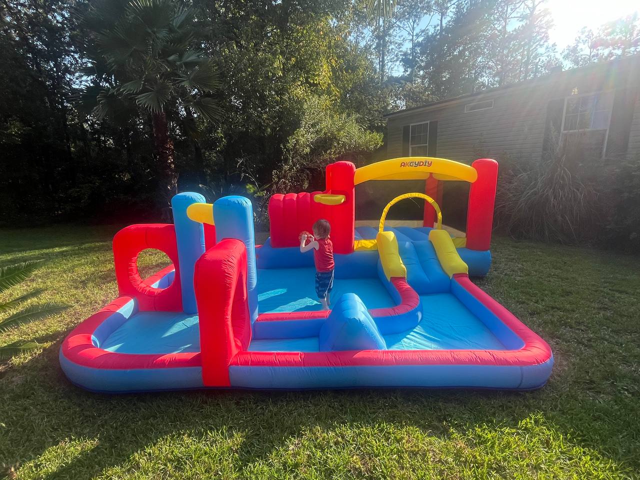 This highly affordable inflatable has every feature packed into one! Fill it with water, run through the obstacle course, jump in the bounce house, or take the slide, combine it with a hose and you’ve got some crazy fun waiting to ensue.